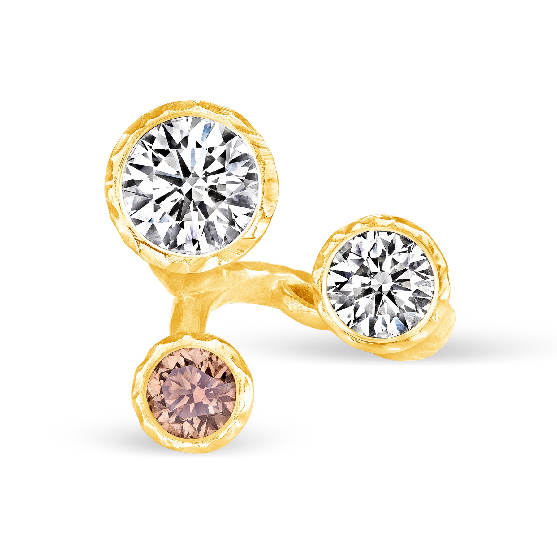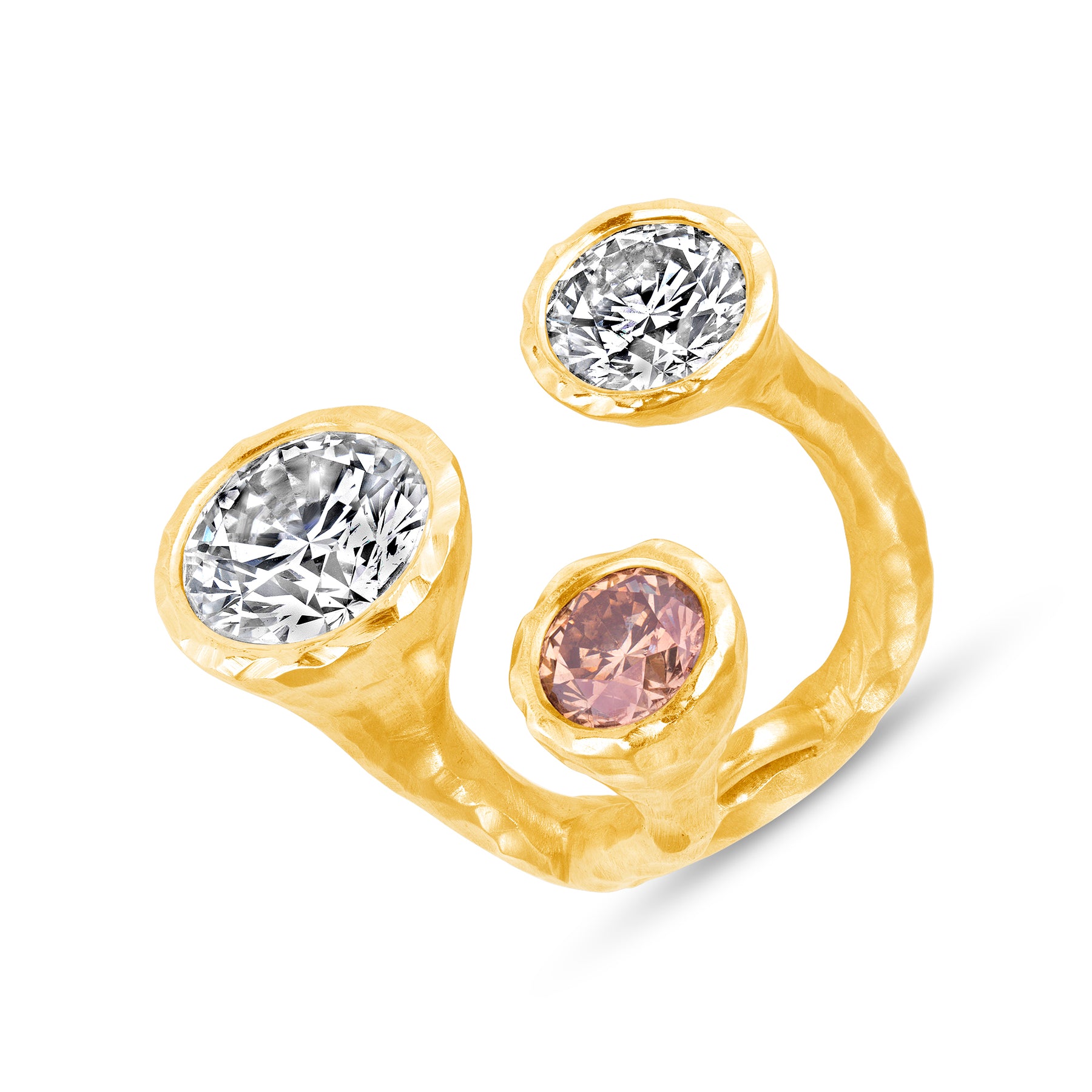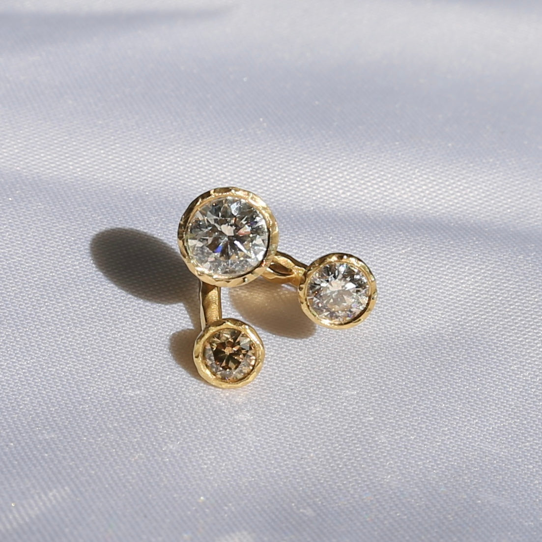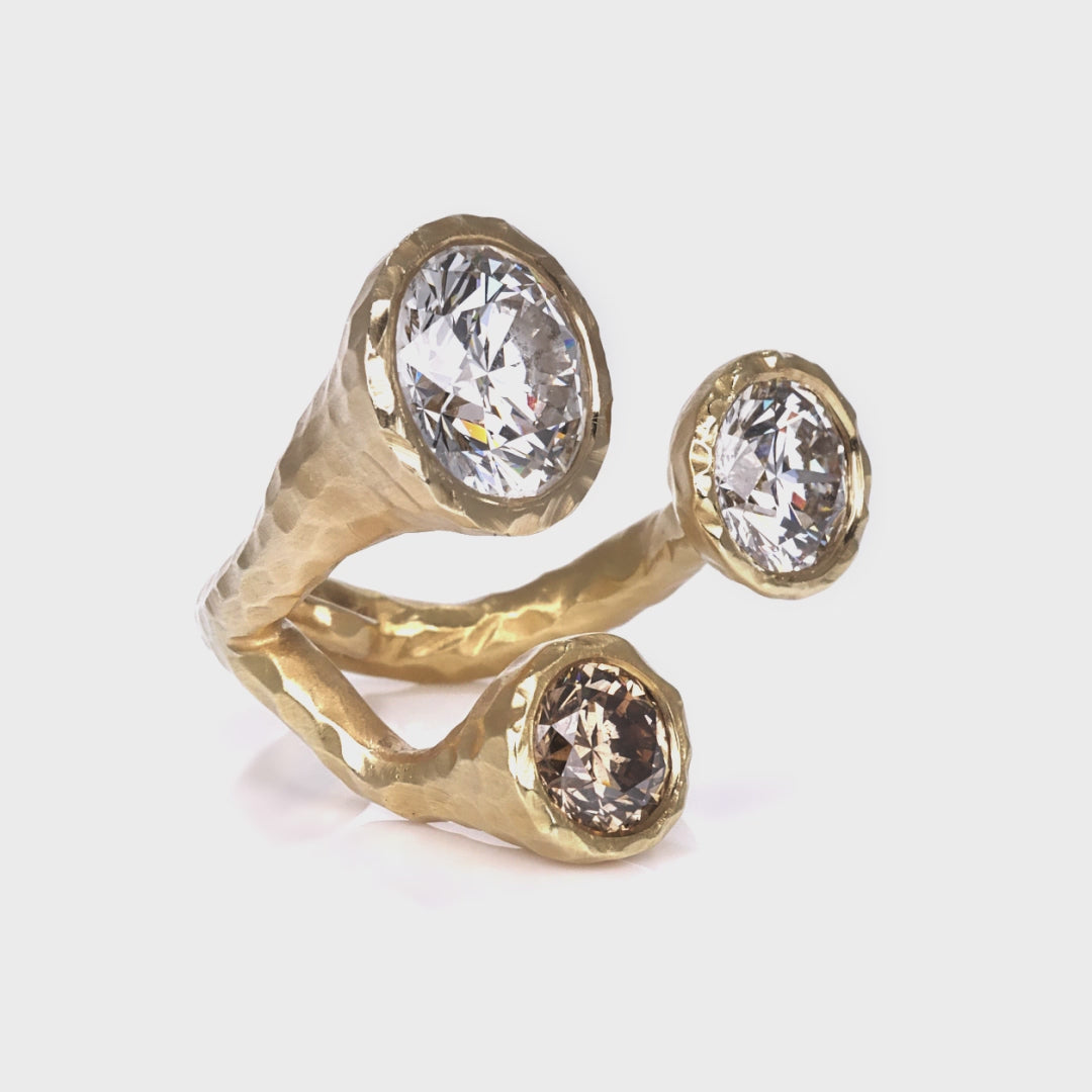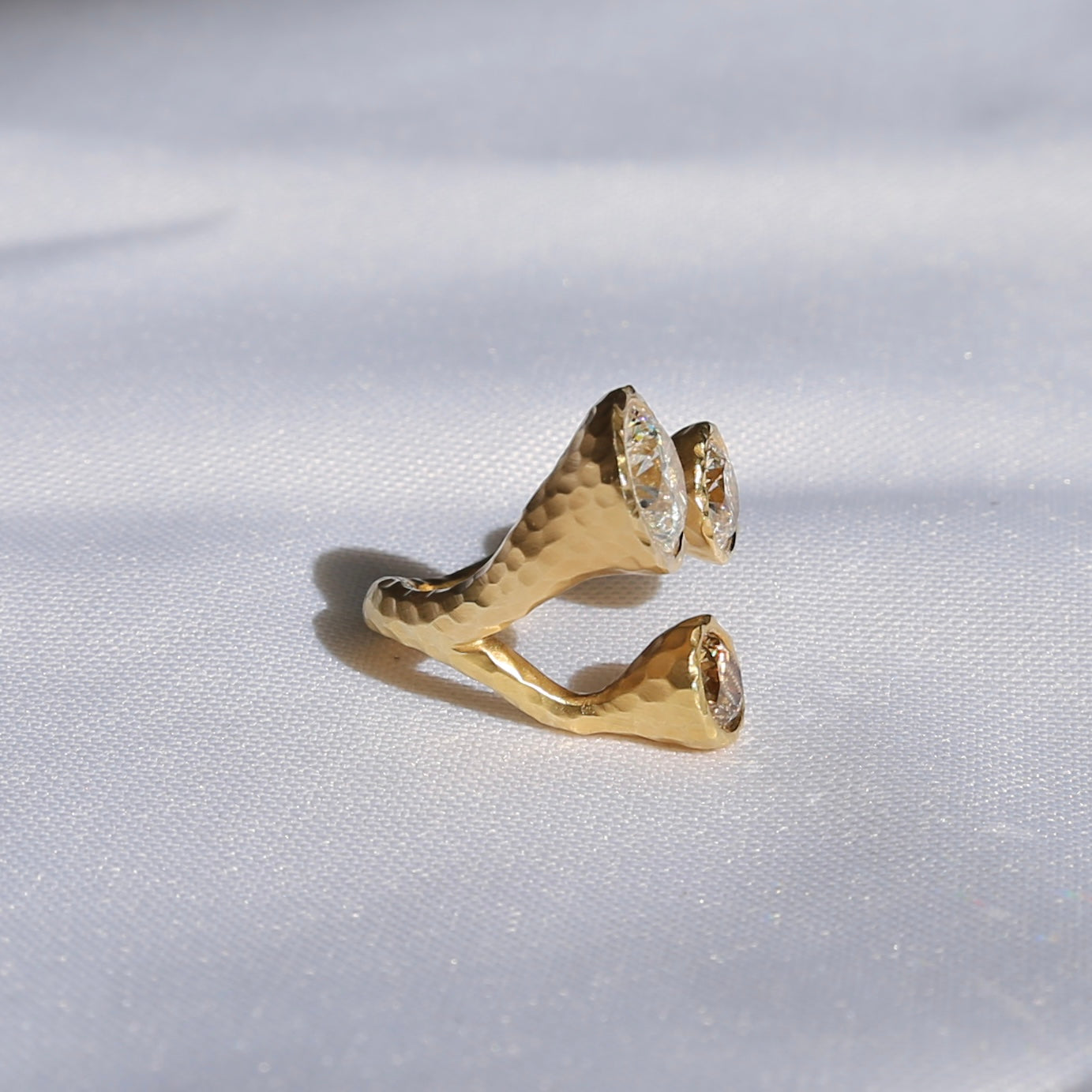 This is our unique spin to a Moi Toi... the stones sit in between your fingers to give a floating look. We love how it can be both a statement ring and an engagement ring.